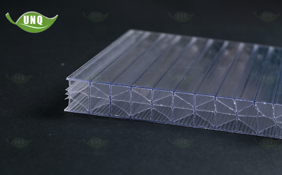 普通中空陽光板是目前普遍使用的產品,由于陽光板在剛進入中國市場時,沒有其他產品類型供選擇,大部分用戶只能選擇這一產品。那時,1畝陽光板大棚造價還是非常清晰的。雙層陽光板透光率在80%左右,比較適合種植業的要求,但保溫性差,而陽光板三層中空板透光、保溫都較好,但節能效果差一些。