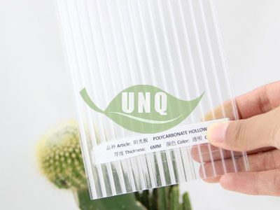 不僅原料會影響板材的使用壽命,我們的生產工藝也會影響板材的使用壽命,在板材生產過程中,溫度、形狀、厚度都會影響板材以后的使用。一般情況下我們建議做成上壁厚、下壁和立筋薄一些的,因為上壁厚可以抵抗外界風沙、冰雹等帶來的沖擊,而立筋是用來支撐板材形狀的,如果太厚會增加板材彎曲時的應力,但是也不能太薄,不然會使板材容易發生變形。生產板材的過程中,如果溫度過高會使原料變黃降解,從而影響板材的透光率,適宜的溫度也能減小板材成型過程中的應力。